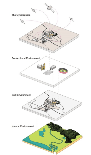 Figure 1. Interconnections between the natural built, sociocultural, and cyber dimensions of human environments